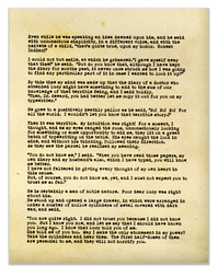 Then it was terrible; my intuition was right! For a moment I thought, and as my eyes ranged the room, unconsciously looking for something or some opportunity to aid me, they lit on a great batch of typewriting on the table. His eyes caught the look in mine, and, without his thinking, followed their direction. As they saw the parcel he realised my meaning.